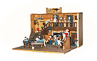 The saloons of the old west. A cowboy going down to the lake to catch supper, and